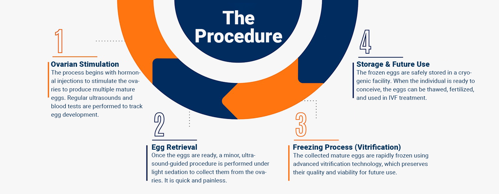 Egg freezing is a medical procedure where a woman’s eggs are collected, frozen, and stored for future use.